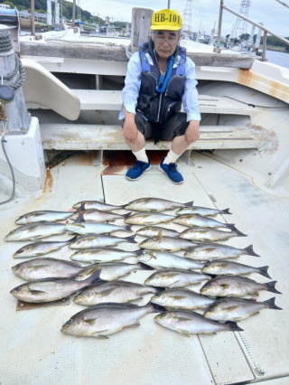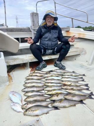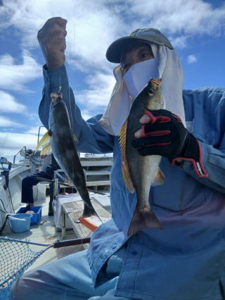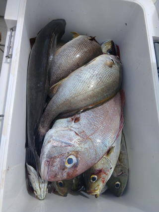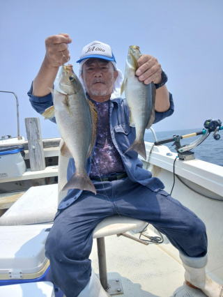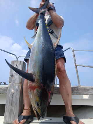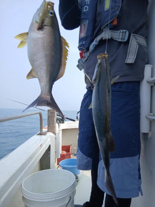 7日8日9日 遠征ツアー カンパチはダメでしたが色々な魚が釣れました~! キハダマグロ、ソウダカツオ、ゴマサバ、マハタモドキ、アカヤガラ、ハチビキ等 最初のポイントでは鳥が辺りを飛び交い、期待したのですが ソウダカツオとゴマサバが釣れただけで、狙いのキハダマグロとカンパチは不発で移動。 その後はあまりぱっとせずに初日は終了 二日目はキハダ狙いの海域に直行するも渋い状況。 鳥も見えず、ナブラも全く無く、早々に見切りをつけて根魚狙いに変更。 しかし、この海域名物の酷い2枚潮に阻まれてやっぱり渋い状況。 移動を繰り返し、ようやくカモメが集まる場所を発見! キャスティングとジギングを繰り返すと、活性が上がってきて周囲でキハダのナブラが発生! キハダマグロを数本キャッチして終了~! ばらした人はリーダーが35ポンドという激細ラインシステム笑笑 その人は冷却ベストを着用してたので、罰として 握りっ屁をファンに放出してやりました。 本人は 「暑くて目まいがします」 と言ってましたが、知らない方が幸せなので黙っておきました。 最終日は 泳がせ釣りの人に分があったような気がしますが、サメが多くて・・・ 総括 今回のツアーはベイトには恵まれた状況ではあったとは思いますが、 追いものの活性が非常に低かった印象でした。 キハダマグロのナブラは本当に凄かったです。 次は日帰り遠征、1泊二日遠征 それぞれ募集をしてますので、お電話かLINEでお問い合わせください