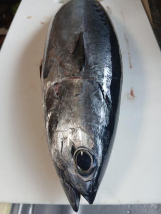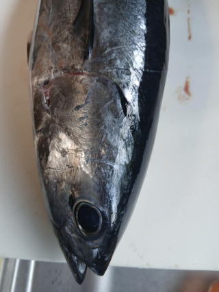 で、夜にはお客様より頂いたソウダカツオを 料理しました 大分ではスマカツオと呼ばれてますが、 正式には マルソウダ です 高知県辺りだと、ヒラソウダ、マルソウダをまとめて メジカ と呼ばれてますね。 ![]() マルソウダとヒラソウダの簡単な見分け方は 鰓蓋の上部の黒い色の所が背中側の黒い部分に繋がっていたら それはマルソウダです。 ![]() ハッキリと繋がってます マルソウダは釣れた日に食べるのが原則です。 釣れたては美味しいですよ ![]() 脂が乗ってますね 血合いも釣れたてなので食べても大丈夫なのですが、 今回は全てカットしました。 某日 船から氷が盗まれるんですよね~ 連日の猛暑で溶けたのかなと思ってたのですが、 微妙な減り方だったんです。 これは盗難に違いないと確信。 ある日、船の掃除をしていたら なんと! 犯人登場! 声かけすると、慌てて逃走 ![]() 逃走する氷泥棒 ![]() 仲間に盗んだ氷を分配してました! 氷泥棒は 沙紀丸の船長でした~笑笑 13日 一つテンヤで色々狙い 真鯛、イトヨリダイ、アヤメカサゴ等 真鯛は良型でした~ これ、ちゃんと狙うと良い釣果を残せそうですよ? 吐き出したベイトは・・・ ケンサキイカ! つまり、こんな所までイカが入ってきてるんだ~って驚きました。 夜焚きのイカ釣り、月末から行きますよ~